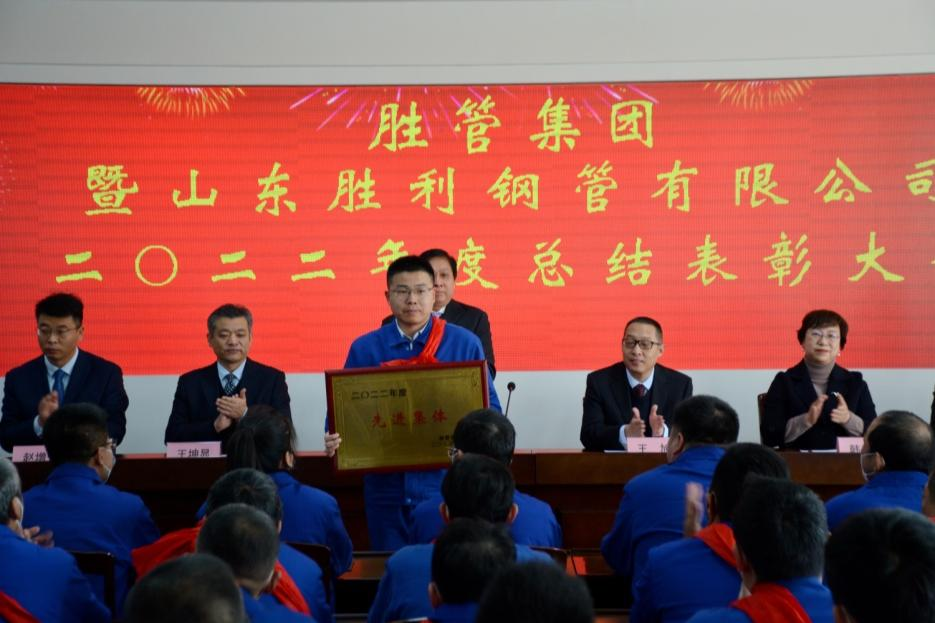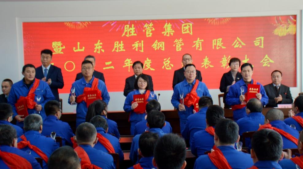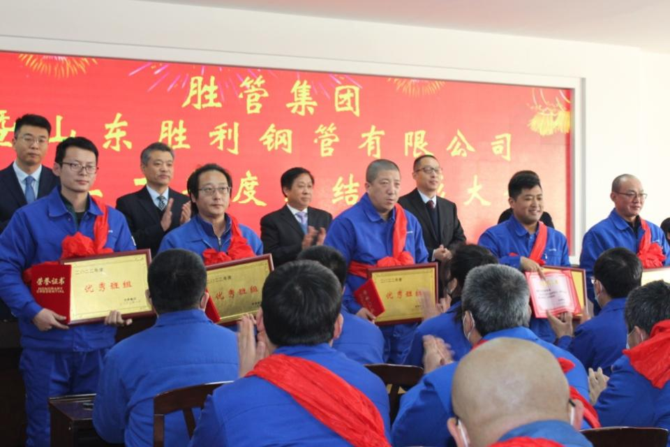 表彰大會由勝管集團黨總支書記刁有大主持。會上,山東勝利鋼管有限公司副總經理張圣光宣讀了勝管集團《關于表彰2022年度先進集體、優(yōu)秀班組、優(yōu)秀管理者、優(yōu)秀員工的決定》,對1個先進集體、5個優(yōu)秀班組、3名優(yōu)秀管理者,26名優(yōu)秀員工進行了表彰。