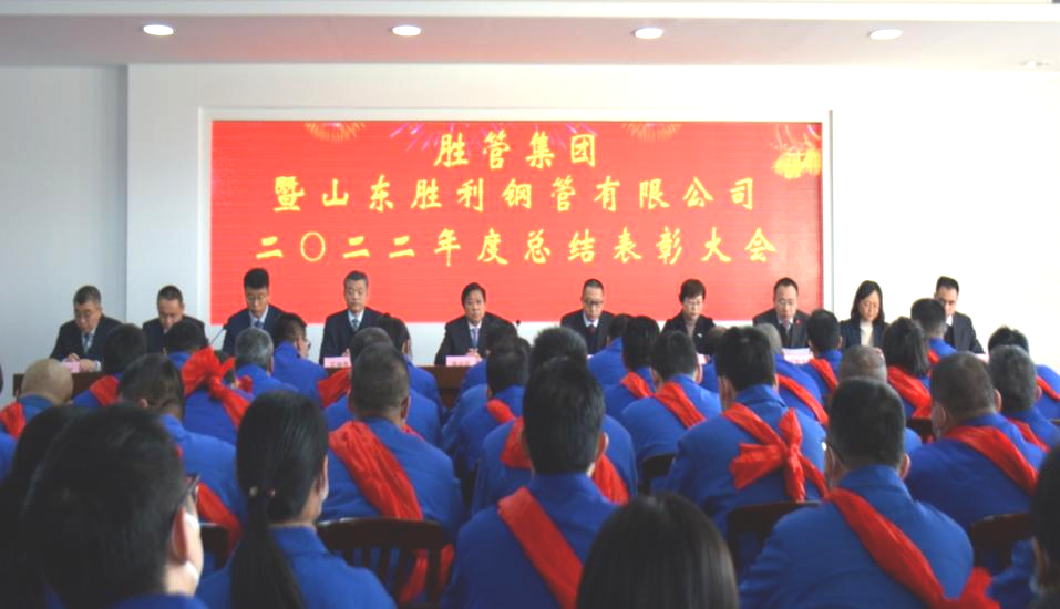 ?? 2023年1月7日上午,勝管集團暨山東勝利鋼管有限公司2022年度總結表彰大會在集團四樓會議室隆重召開。勝管集團經理層、山東勝利鋼管有限公司中層以上管理人員、員工代表及受表彰人員參加了本次會議。