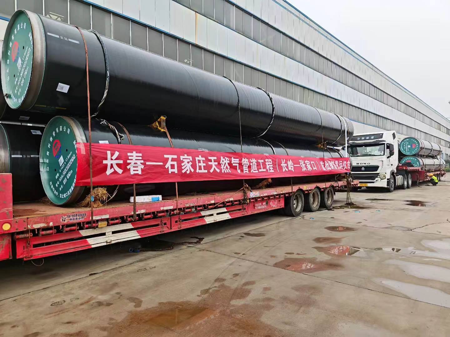 ? ?助力國(guó)家能源管道建設(shè),凝聚力量供保長(zhǎng)石管道。10月08日上午,長(zhǎng)春一石家莊天然氣管道工程(長(zhǎng)嶺一張家口) 首批鋼管發(fā)運(yùn)儀式在山東勝利鋼管有限公司舉行。公司副總經(jīng)理王碩、銷(xiāo)售公司、物流中心及管線監(jiān)理、物流承運(yùn)單位參加了本次發(fā)運(yùn)儀式。首日首批次該項(xiàng)目用Φ1422*17.8mm常溫型3LPE普通級(jí)+環(huán)氧型內(nèi)減阻涂層螺旋縫埋弧焊鋼管裝車(chē)由山東勝利發(fā)往內(nèi)蒙古赤峰中轉(zhuǎn)站,標(biāo)志著公司承接的長(zhǎng)石天然氣管道項(xiàng)目產(chǎn)品正式陸續(xù)開(kāi)始交貨。